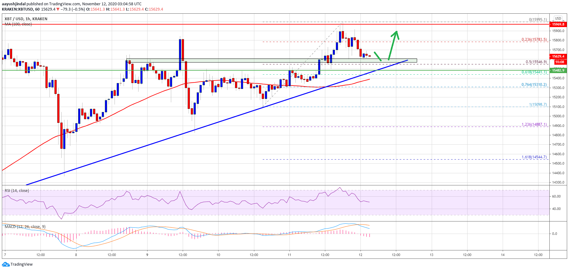 Bitcoin price regained momentum and broke the $15,800 resistance against the US Dollar. BTC is trading nicely above the $15,500 support and the bulls seem to be aiming a break above $16,000.