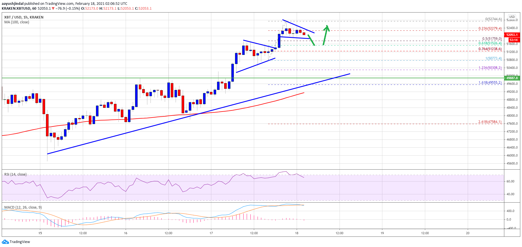 Bitcoin price extended its rally above the $51,000 level and it even broke $52,000 against the US Dollar. BTC traded to a new all-time high near $52,745 and it is consolidating gains.