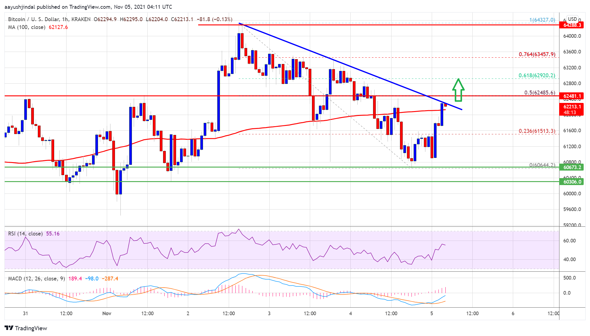 • The price is now trading above $62,000 and the 100 hourly simple moving average.