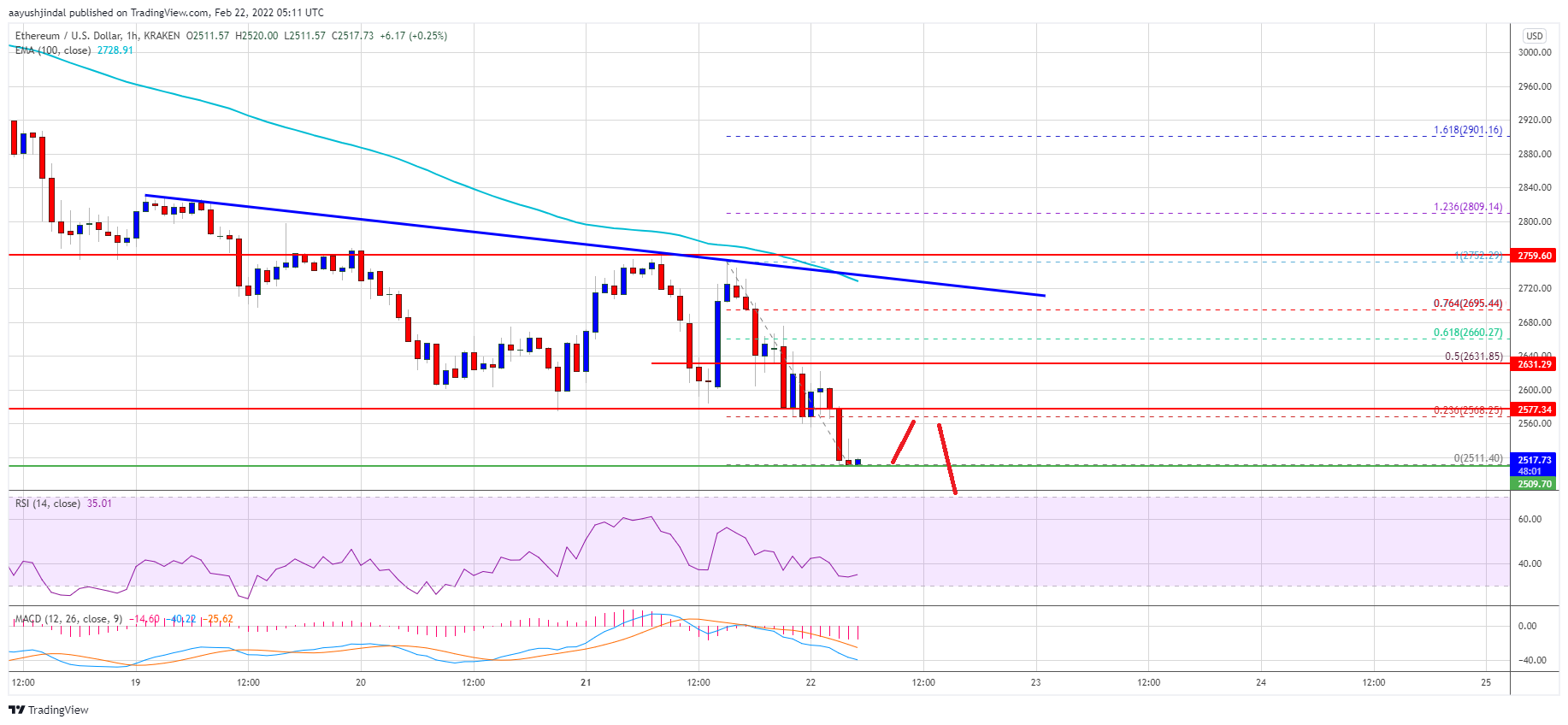 If ethereum fails to start a recovery wave above the $2,650 level, it could start another decline. An initial support on the downside is near the $2,510 level or the recent low.