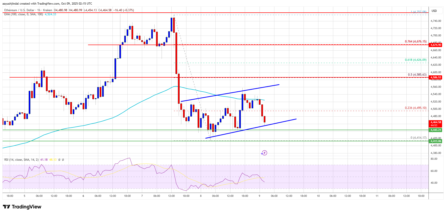 Ethereum price failed to extend gains above $4,600 and declined. ETH is now moving lower and might extend losses below $4,400 in the short term.