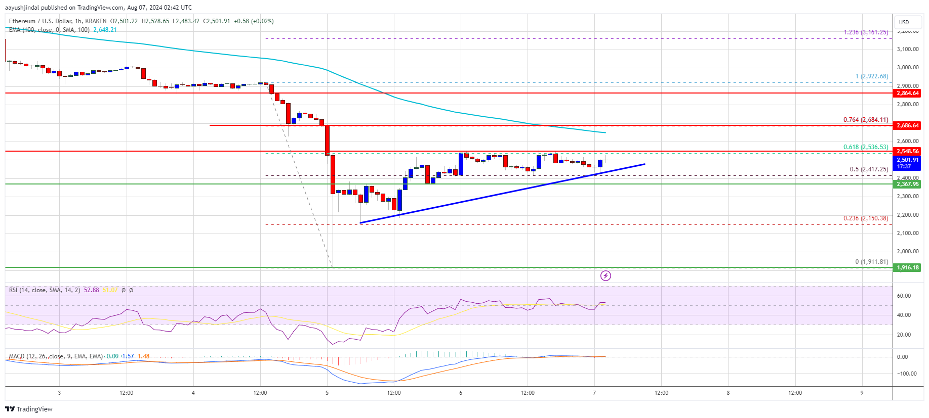 Ethereum price started a recovery wave above the $2,350 resistance zone. ETH could gain bullish momentum if it clears the $2,680 resistance zone.
