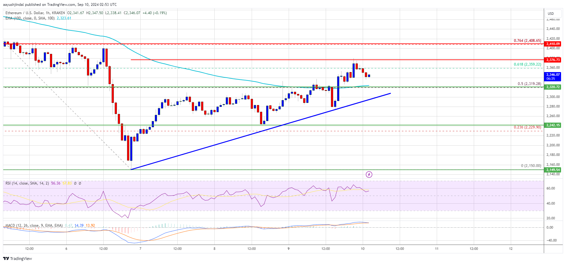 Ethereum price is attempting a recovery wave above $2,320. ETH might struggle to gain pace for a move toward the $2,500 resistance zone.