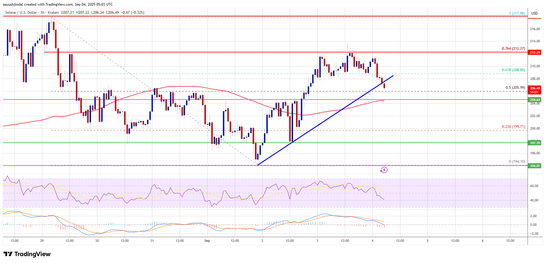 There was a break below a connecting bullish trend line with support at $207 on the hourly chart of the SOL/USD pair. Solana is now trading above $204 and the 100-hourly simple moving average.