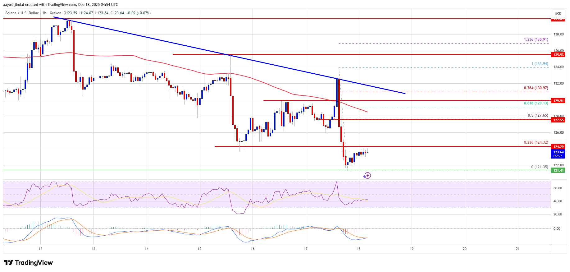 Solana is now trading below $128 and the 100-hourly simple moving average. On the upside, immediate resistance is near the $125 level. The next major resistance is near the $128 level or the 50% Fib retracement level of the downward move from the $134 swing high to the $121 low.