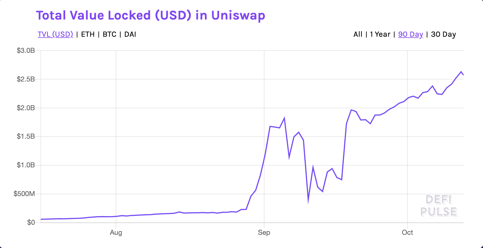 The TVL of the UniSwap pool. Source: DeFi Pulse