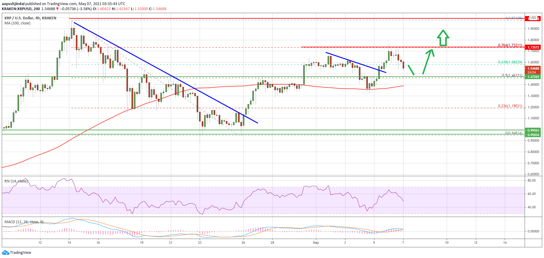 It is now trading well above $1.50 and the 100 simple moving average (4-hours). XRP is now facing hurdles near the $1.73 and $1.75 levels.
