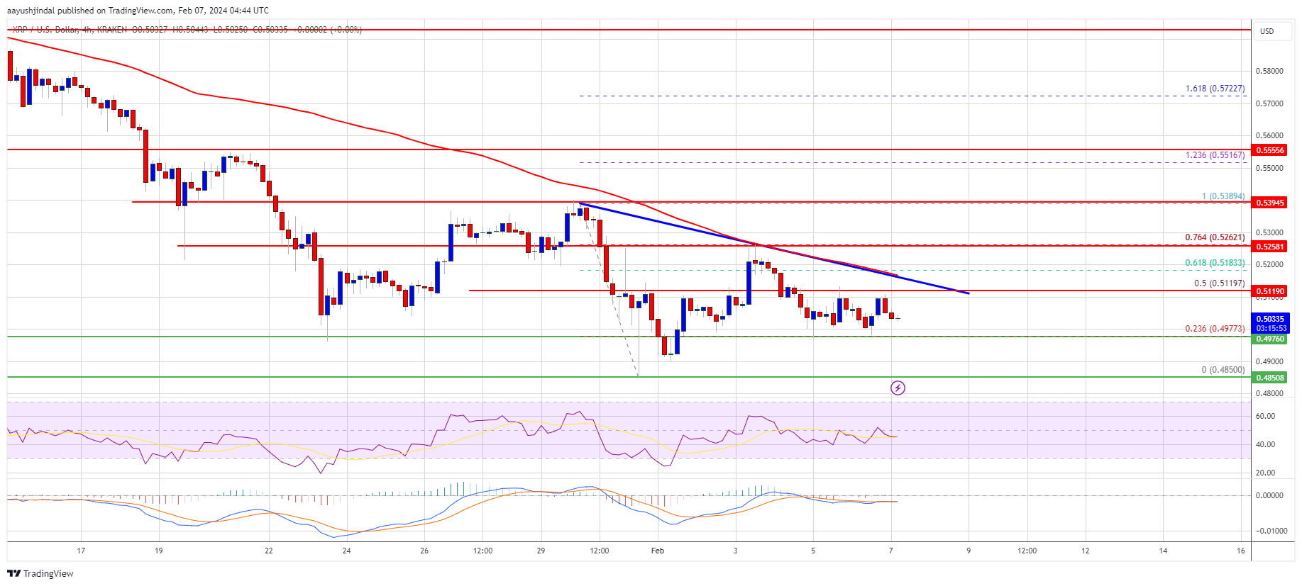 Recently, there was a recovery wave above the $0.500 level. The bulls pushed the price above the 50% Fib retracement level of the downward wave from the $0.5390 swing high to the $0.4850 low. However, the bears were active near the $0.525 resistance.
