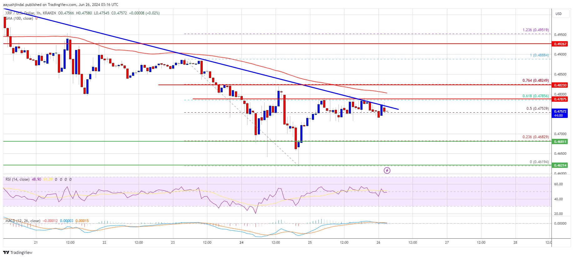 XRP price started a recovery wave from the $0.4620 support. The price is now struggling to clear $0.4780 and might restart its decline.