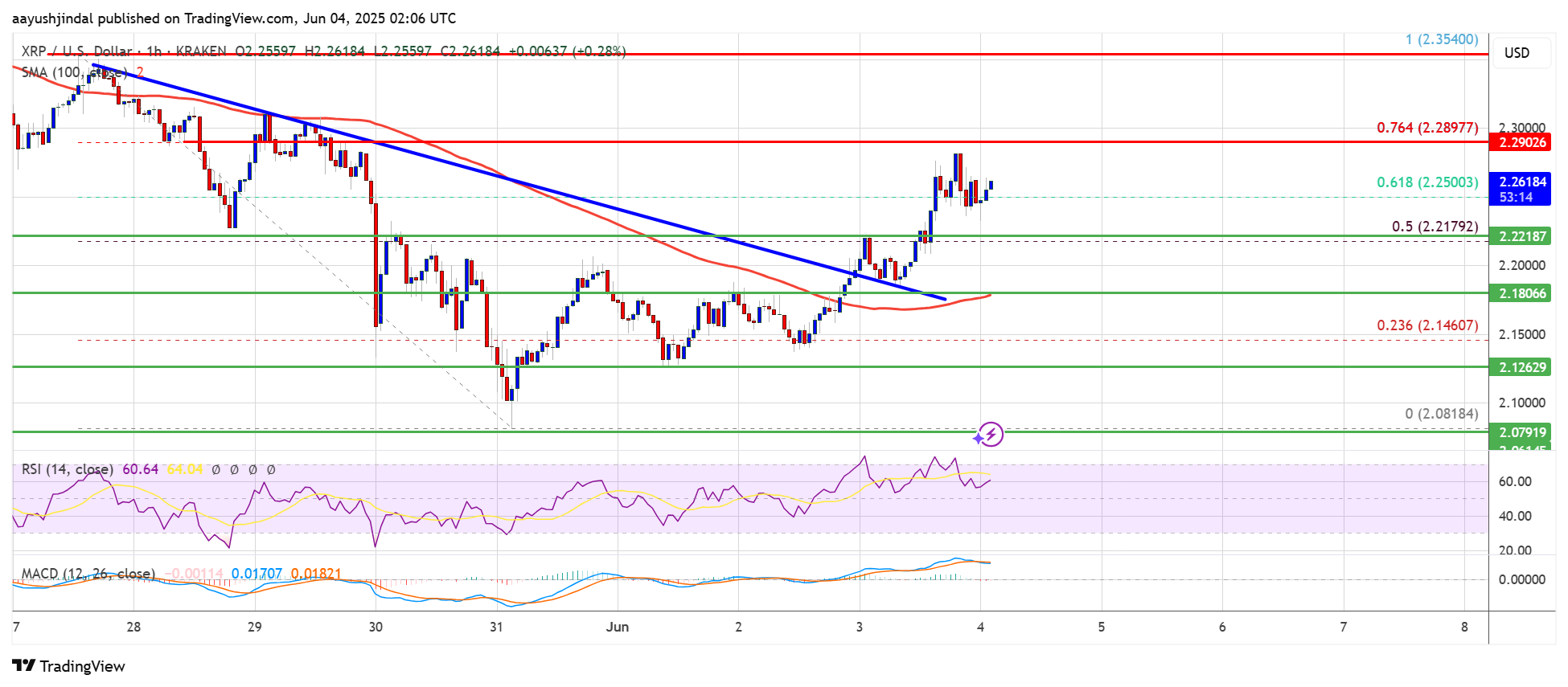 Hourly RSI (Relative Strength Index) – The RSI for XRP/USD is now above the 50 level.