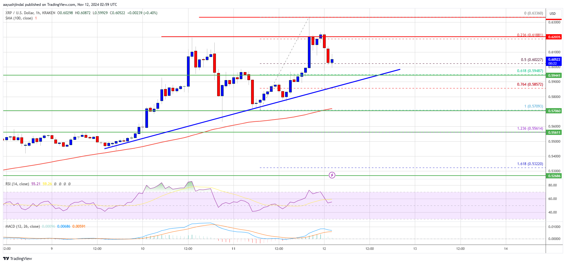 XRP price is slowly moving higher above the $0.5880 support zone. The price tested the $0.6330 zone and is currently correcting gains.