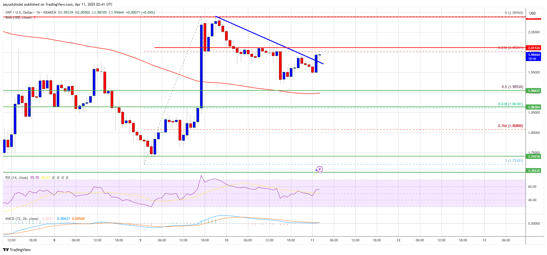 XRP price started a fresh increase above the $1.950 resistance. The price is now consolidating and must settle above $2.00 for more gains.