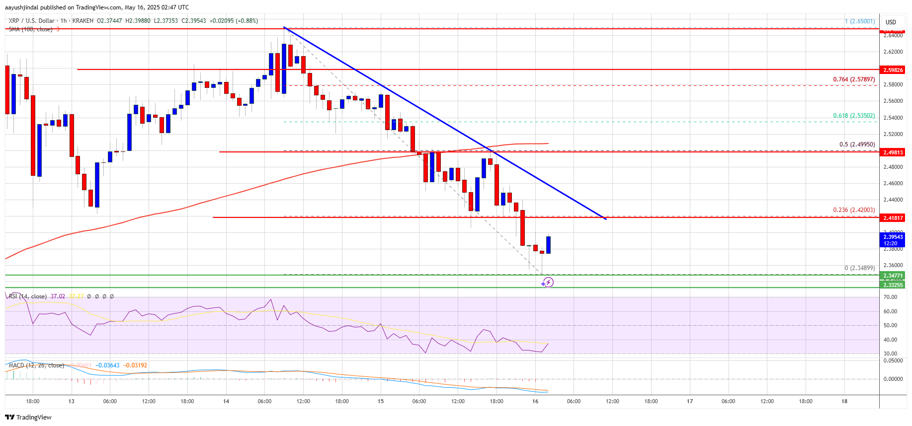 XRP price started a downside correction below the $2.50 zone. The price is now consolidating and might find bids near the $2.350 support zone.
