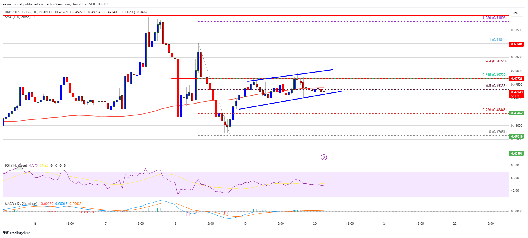 XRP price is struggling to start a steady increase above $0.50. The price must settle above $0.50 and $0.510 to gain bullish momentum in the near term.