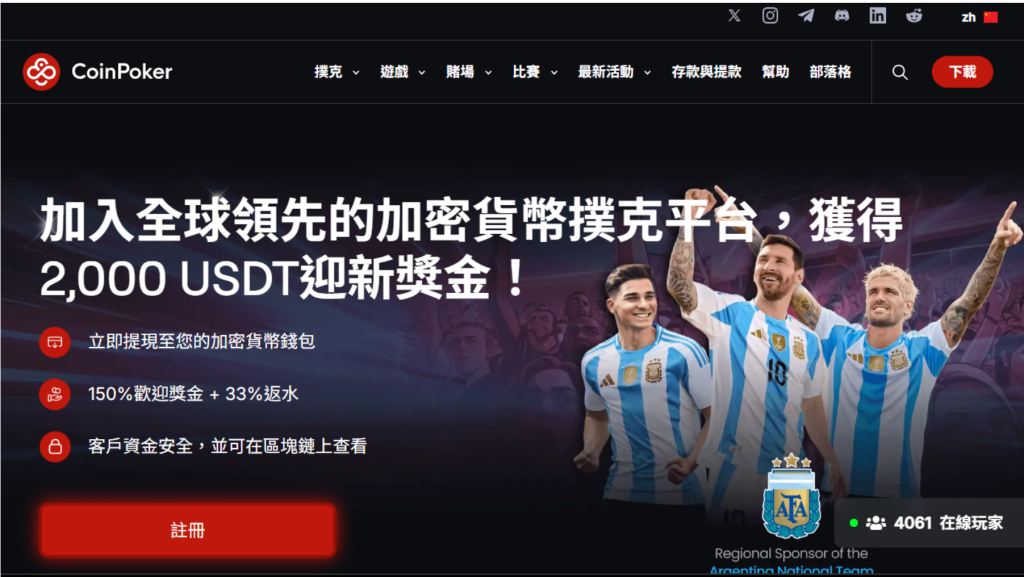 - Coinpoker – 專注於加密撲克與百家樂的高隱私平台,使用自主RNG並持Anjouan執照