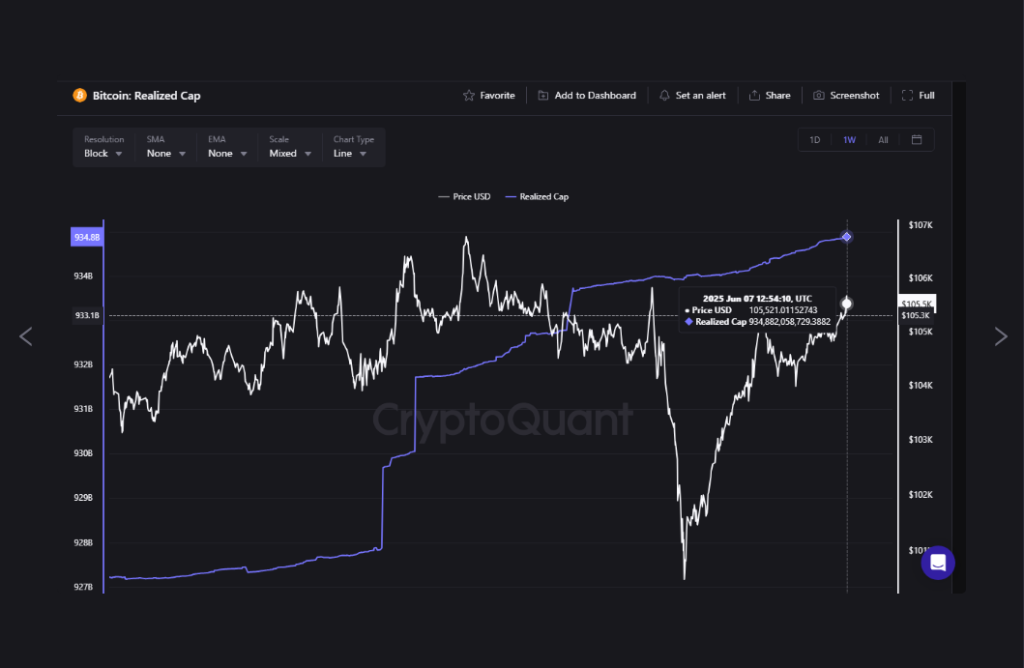 According to the same data, Bitcoin’s Realized Capitalization recently hit $935 billion. It’s the highest level on record. Realized Cap tracks the value of all coins at the price when they last moved on-chain. A rising number shows fresh capital flowing into Bitcoin. It suggests both small traders and large institutions are still betting on BTC’s long-term value.