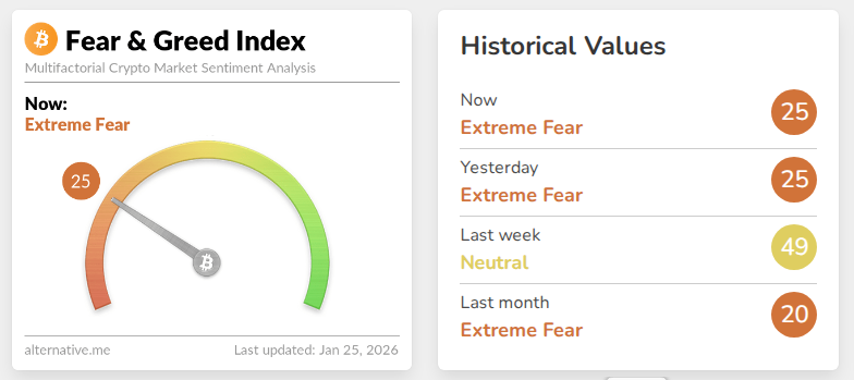 The wider mood has soured. The Crypto Fear & Greed Index registered an Extreme Fear score of 25, and sentiment trackers have been flashing caution. Reports say Santiment believes retail traders are pulling back while attention drifts toward more traditional assets.