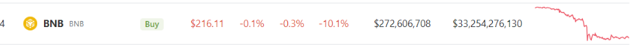 As of the latest update, CoinGecko reported the current BNB price at $216, marking a 0.3% decline over the past 24 hours and a significant seven-day slump of 10%.