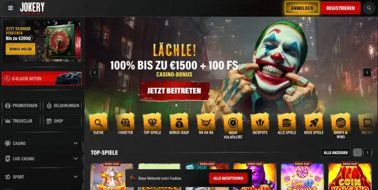Jokery hebt sich von anderen Online Casinos ohne Einzahlungslimit vor allem mit seinem außergewöhnlichem Thema ab. Wer sich hier registriert, kann von 100 % Bonus bis zu 1.500 Euro + 100 Freispielen profitieren. Hier hört der Spaß aber noch nicht auf. Jokery bietet blitzschnelle Auszahlungen und wöchentliche Prämien.