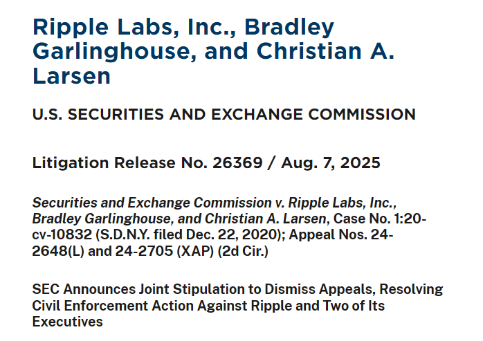 La larga batalla legal de Ripple Labs con la Comisión de Bolsa y Valores de EE. UU. (SEC) ha terminado oficialmente después de que ambas partes acordaran retirar sus apelaciones en el caso.