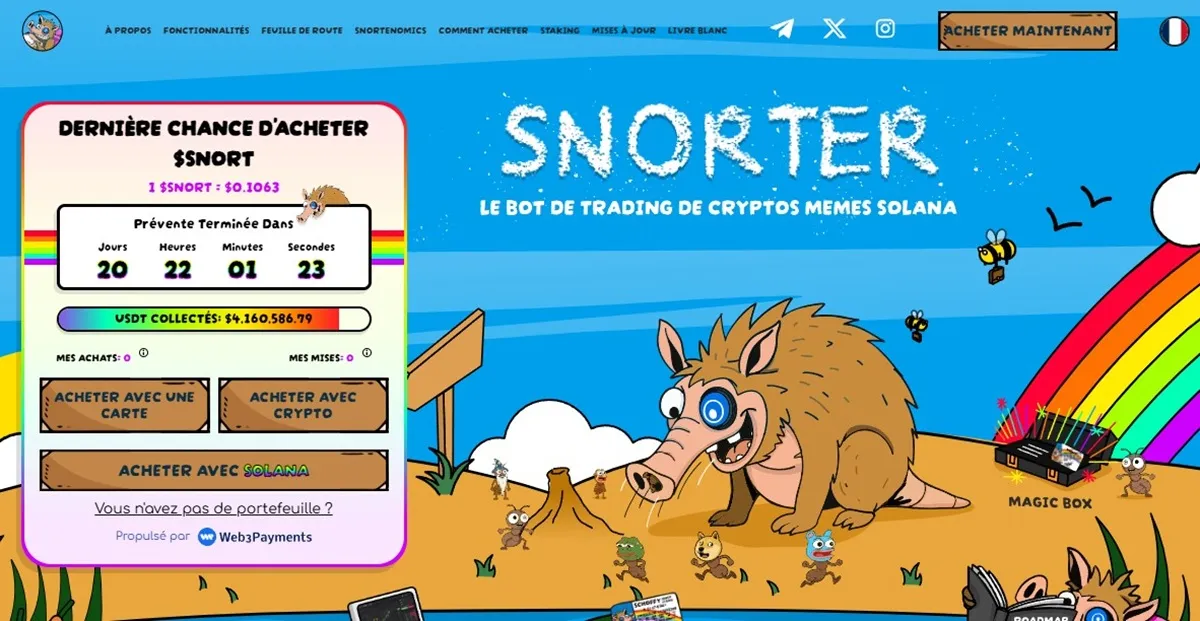 No se pierda la oportunidad de posicionarse en un proyecto que encarna la eficiencia y la seguridad en el corazón de las mejores meme coins Solana. Además, poseer tokens $SNORT le permitirá beneficiarse de una reducción en sus comisiones de trading si utiliza el bot.