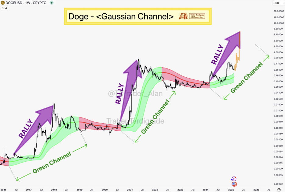 ## El canal gaussiano muestra una fuerza alcista continua para Dogecoin