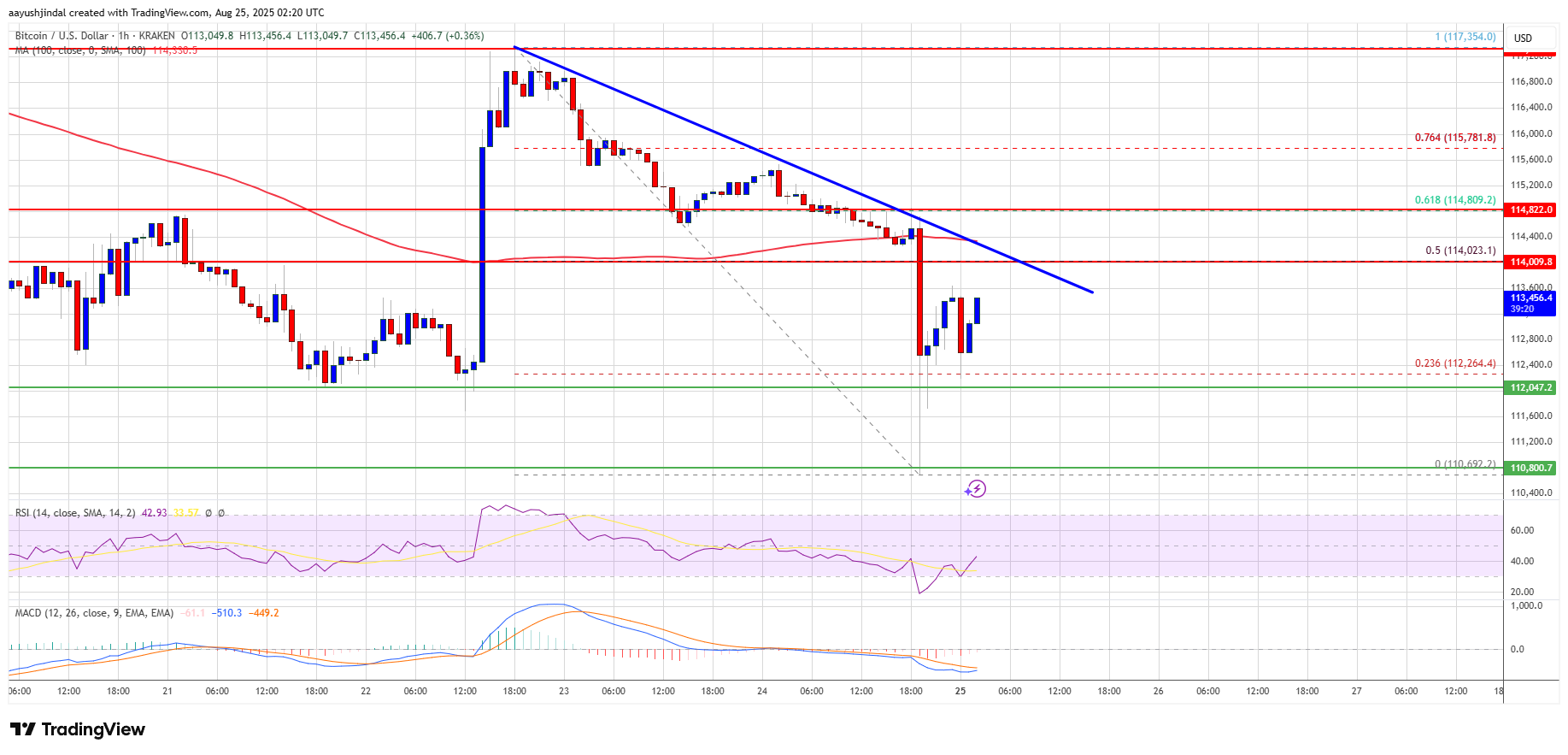 Bitcoin price is attempting to recover from $110,650. BTC is back above $112,200 but faces many hurdles on the way up to $115,000.