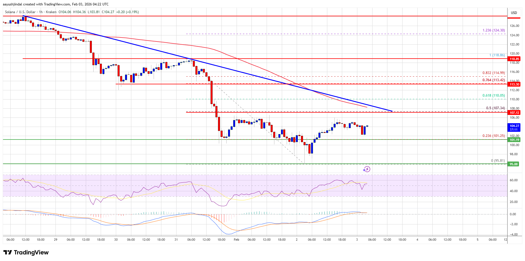 Solana no logró estabilizarse por encima de $112 y extendió sus pérdidas. El precio de SOL ahora se está recuperando por encima de $102, pero enfrenta muchos obstáculos cerca de $108 y $110.