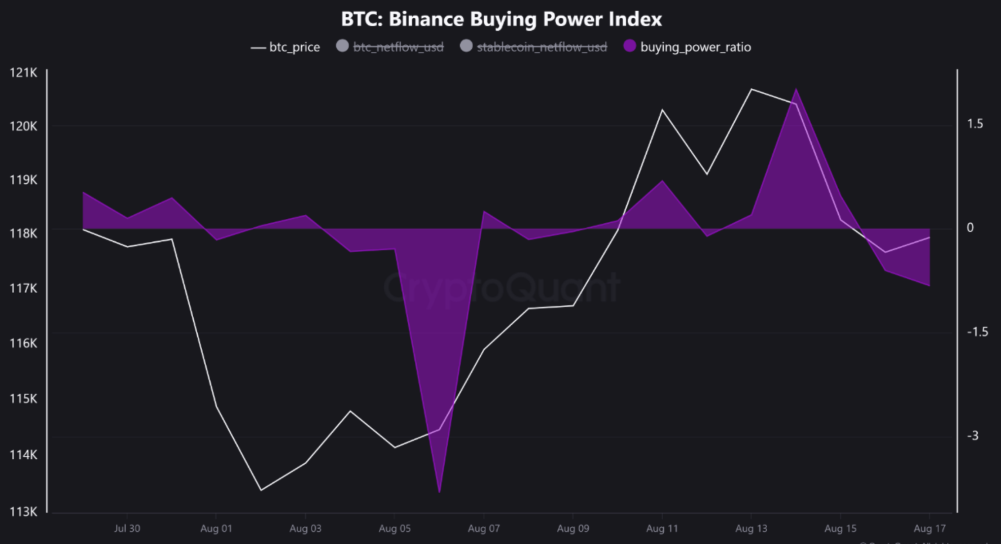 En los d铆as siguientes, del 16 al 17 de agosto, el ratio fue testigo de una fuerte reversi贸n, cayendo a -0.81 en 48 horas. Como resultado, m谩s poder de compra sali贸 de Binance del que entr贸, lo que confirma que la principal fuente de combustible del mercado de BTC se hab铆a agotado.