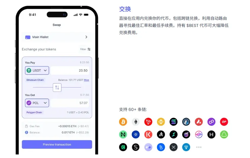 Si gestionas activos en varias billeteras, Best Wallet también admite la importación e integración sencilla. Ya admite operaciones multicadena; recientemente se ha ampliado la compatibilidad con Bitcoin, y la integración de Solana está próxima.