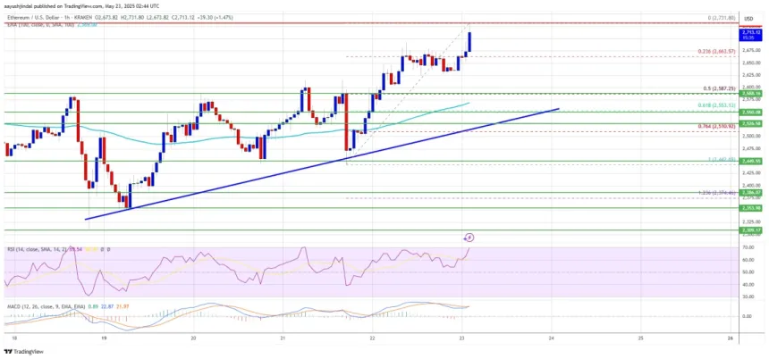 El precio de Ethereum ha encontrado soporte en 2.500$ y ha comenzado una nueva subida. Actualmente ETH está creciendo y podría apuntar a superar la zona de resistencia en 2.750$. Estos son los datos resumidos: