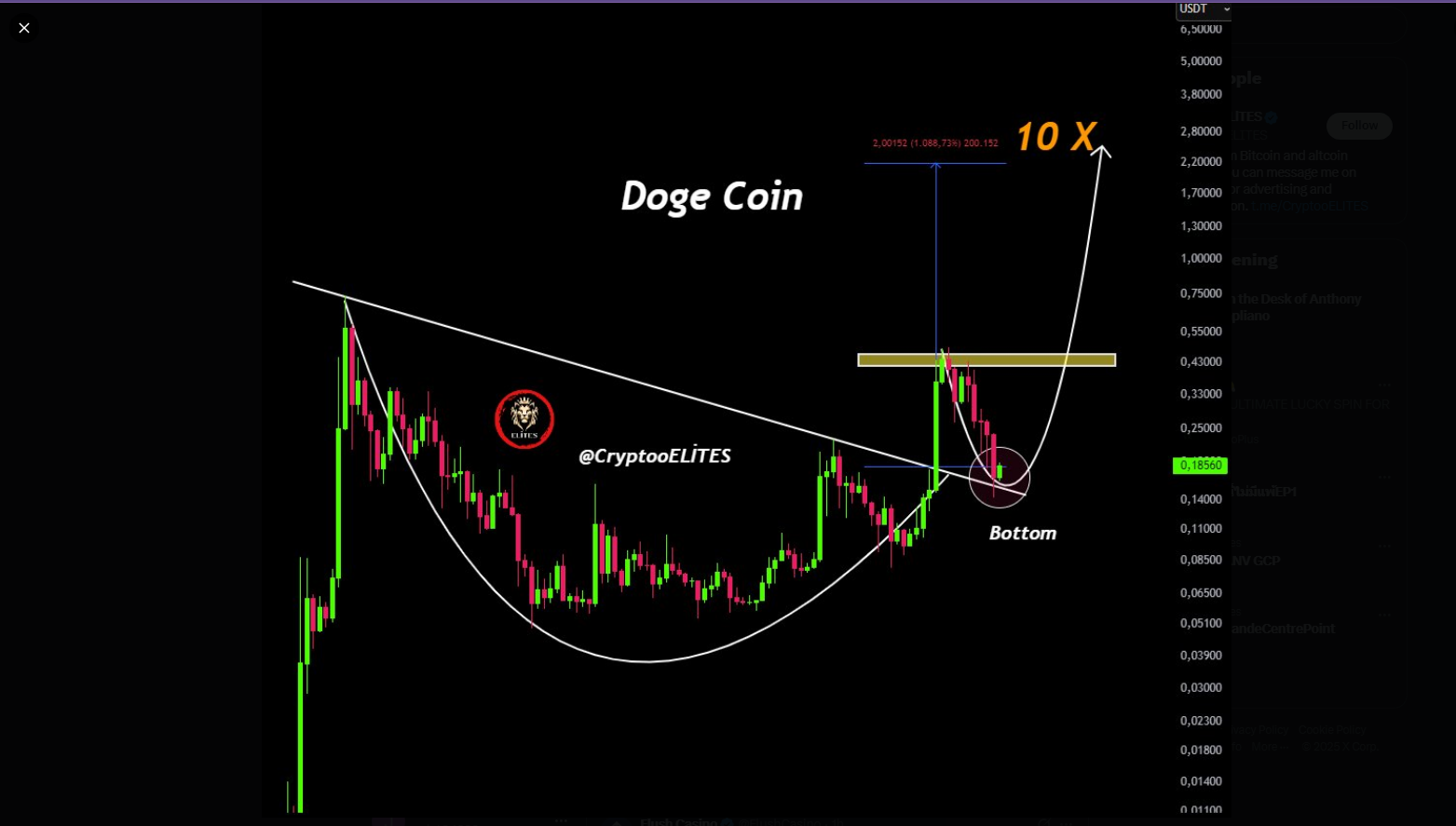 El analista de criptomonedas CryptoELITES señala un patrón de taza y asa, lo que sugiere que DOGE está en camino de completar la formación y podría ver ganancias de 10x.