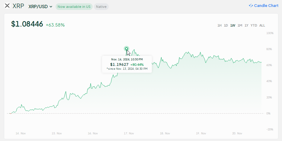 Recientemente, XRP ha experimentado un aumento significativo en su valor, alcanzando un máximo de tres años de $1,27. El token se está cotizando actualmente a $1.09, con un aumento sostenido semanal del 80%, y muchos inversionistas están contemplando si esto marca el inicio de un nuevo período alcista.