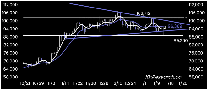 El analista jefe de investigación de 10x Research, Markus Thielen, cree que Bitcoin tiene un futuro brillante. Si la bola de cristal de Thielen es correcta, el activo digital podría experimentar oscilaciones de precios significativas el 29 de enero de 2025, una vez que salga de su llamada formación de "triángulo simétrico".
