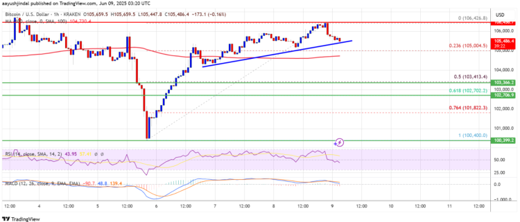 Bitcoin ha avviato un nuovo recupero superando la soglia dei 105.000$. Attualmente sta consolidando i guadagni e potrebbe tentare un nuovo slancio verso la resistenza dei 106.500$.
