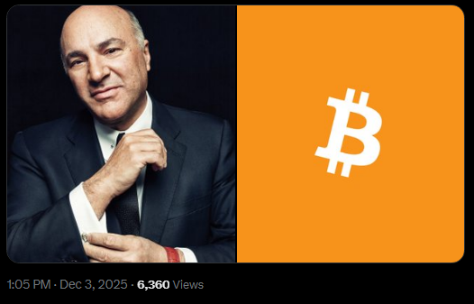 Kevin O’Leary rechazó lo que muchos operadores están apostando, diciendo que no espera que la Reserva Federal de EE. UU. recorte las tasas en diciembre y que tal movimiento no sacudiría el precio de Bitcoin.
