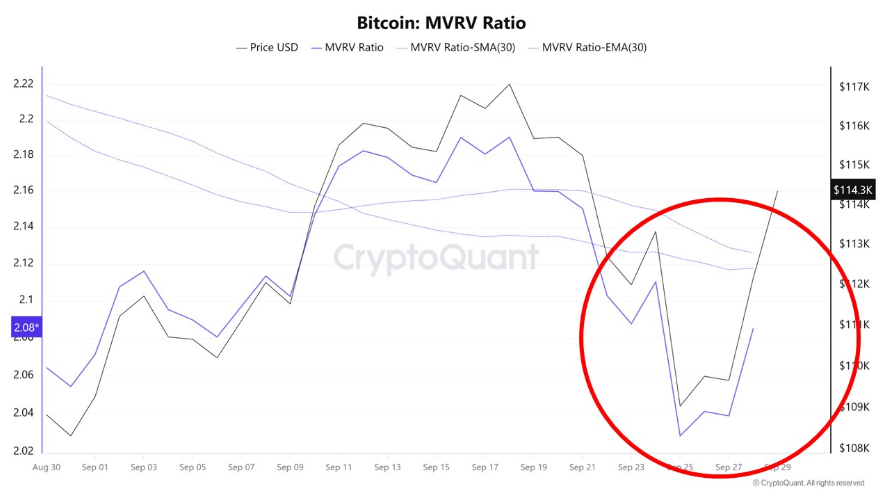 Al mismo tiempo que esto sucedía, las reservas de intercambio cayeron sustancialmente, ya que las monedas se retiraron de los intercambios y dejaron el almacenamiento a largo plazo. Según el análisis, la proporción MVRV que previamente se hundió durante la fase de venta, comenzaba a recuperarse a medida que el valor del valor de mercado aumentaba en relación con el valor realizado.