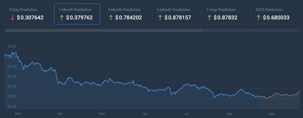 Cardano ha sido el centro de atención últimamente, no sólo porque ha aumentado ligeramente de precio sino también debido a su pronosticado aumento. Según las predicciones, ADA podría aumentar hasta un 16% y alcanzar hasta $0,37 para octubre de 2024. Pero lo que realmente atrajo el interés fue la audaz declaración del analista de Cardano, Dan Gambardello, de que ADA podría aumentar la friolera de un 1.000% frente a Bitcoin.