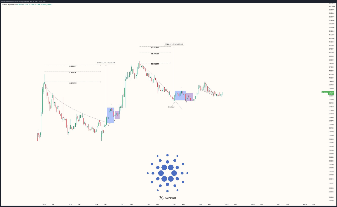 El analista de criptomonedas Javon Marks cree que ADA tiene más recorrido. El 1 de diciembre, Marks presentó un precio objetivo de 2,77 dólares, es decir, un 130% por encima de su valor actual. También sugirió que ADA podría seguir el mismo camino que en 2021 y subir entre 5,29 y 7,82 dólares. Lark Davis, otro destacado analista, fue aún más lejos y predijo que ADA se dispararía un 747% hasta los 10 dólares.