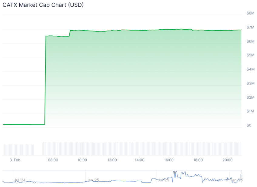 La sesión ha estado marcada por la percée de CATX, acreditada con un aumento de hasta 3 649 % en 24 horas. En el universo de los tokens con muy baja capitalización, este tipo de auge atrae inmediatamente a los especuladores, en busca de oportunidades rápidas.