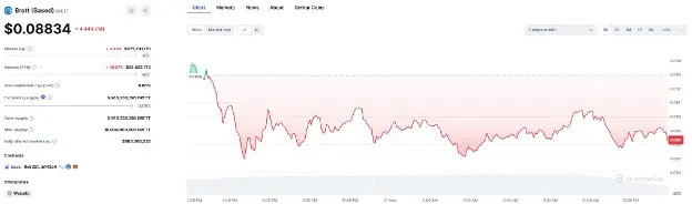 Con la recuperación del mercado de las criptomonedas de ayer, las meme coins se han recuperado, y Brett experimentó un aumento del 38% a 0,01026 dólares. Sin embargo, desde entonces ha habido una caída, y muchas meme coins han perdido valor en las últimas 24 horas, incluida Brett, que ha bajado un 4,44%.