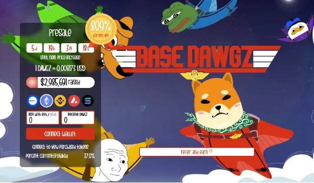 Base Dawgz (DAWGZ), un proyecto de meme coin en la cadena Base, está a punto de superar su objetivo de financiación de 3 millones de dólares, con más de 2,9 millones de dólares ya recaudados y vendiéndose a 0,008173 dólares cada uno. El token emplea un innovador modelo de referidos para ganar, que recompensa a los usuarios por compartir contenido sobre DAWGZ en X (Twitter).