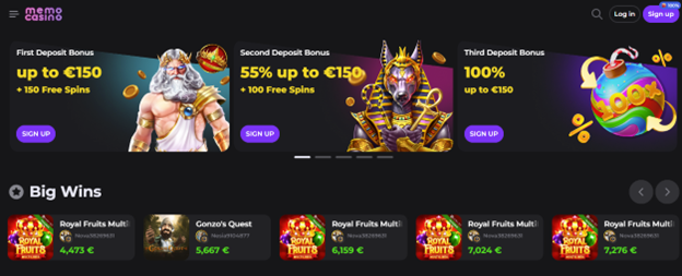 The casino provides a vast array of slot and casino games, all verified for fair RTP (Return to Player) rates. The average RTP% of Memo Casino is above 97%.