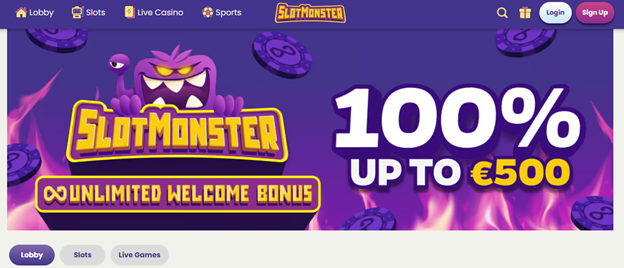 - SlotMonster – 100% up to €500 Welcome Bonus