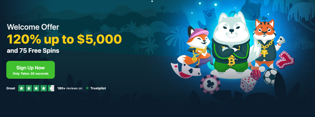 5. Wild.io – 120% Bonificación hasta $5,000 + 75 Giros Gratis