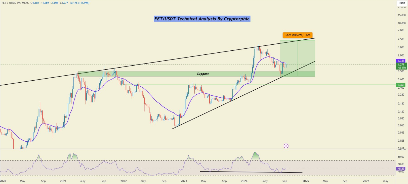Otro investigador de criptomonedas, Nebraskangooner, reveló en el gráfico de precios de FET un patrón significativo de cabeza y hombros invertidos. Generalmente visto como una indicación positiva, este patrón podría revertir la tendencia si el token rompe la línea de cuello. Nebraskangooner dijo que esto podría resultar en una gran ventaja, con FET alcanzando nuevos máximos si el patrón sigue la trayectoria esperada.