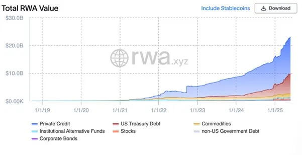 Los activos del mundo real tokenizados (RWA) ya no son un concepto del futuro; se están implementando rápidamente en la cadena. Actualmente, hay más de 22.960 millones de dólares en RWA (excluyendo las stablecoins) circulando en el ecosistema de la cadena pública. Desde bonos del Tesoro de EE. UU. hasta bienes raíces, la revolución financiera en cadena se está acelerando, con gigantes de las finanzas tradicionales como BlackRock, Franklin Templeton y WisdomTree como actores principales.