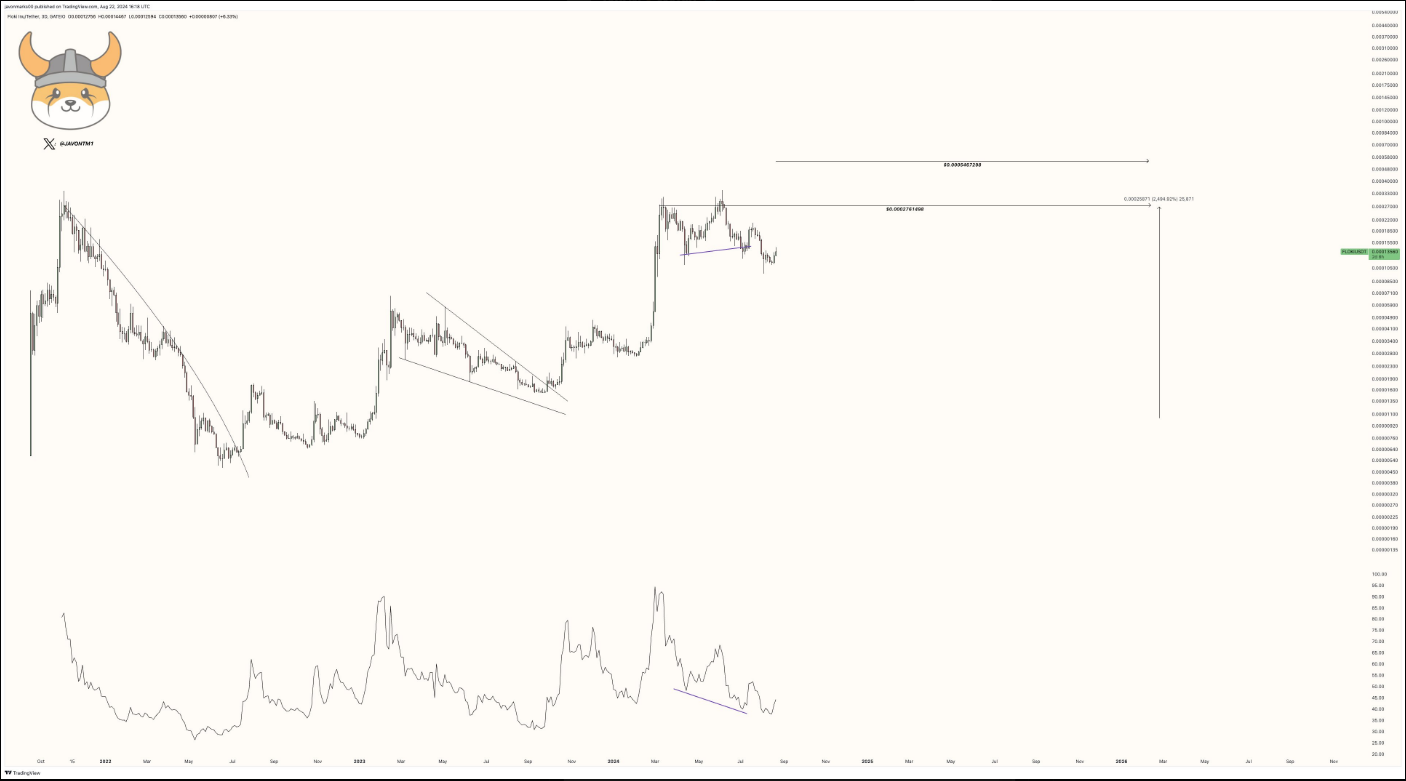 El analista de criptomonedas Javon Marks acaba de destacar a FLOKI como un activo digital que podría registrar un crecimiento impresionante. En una publicación en X, Marks señaló que si FLOKI confirma una denominada divergencia alcista oculta, se pueden esperar ganancias de más del 96%.