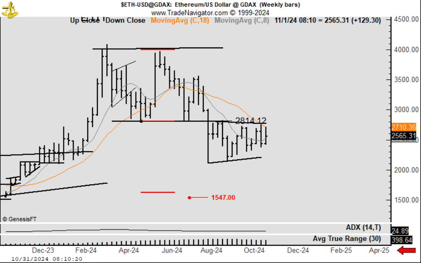 De hecho, el gráfico sigue siendo bajista con un objetivo no cumplido en 1551 pic.twitter.com/sjkXyTQXU2— Peter Brandt (@PeterLBrandt) 31 de octubre de 2024