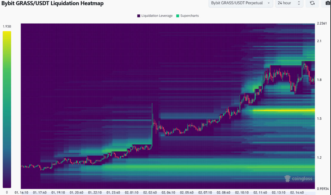 Es difícil entender la acción del precio de GRASS, ya que solo se lanzó hace unos días. Sin embargo, los analistas ven una tendencia alcista en los plazos más bajos del gráfico. El token cuenta con un volumen superior al promedio en las últimas 24 horas.